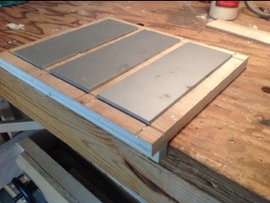 I took a little time today to create a board to hold my diamond plates. Over the last two years I have been using water stones for all of my sharpening and had good success. There are two complaints from these stones, the first is the time it takes to sharpen a chisel and the second, stone, water and freezing temperatures don’t mix. Solving the time issue is really a matter of stone selection and moving towards hand sharpening. By using a coarser stone I could greatly decrease time. Getting rid of the jigs and time to set them up by hand sharpening would decrease the time even more.