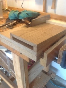 The first couple of projects that I made for the Hand Tool School are used in most projects. One of these is a shooting board. Not satisfied with the flat board, mine has an incline and works well. There is just one thing about my shooting board. Most of you know Shannon Rogers is left handed, I’m very definately right handed. Look at the picture – it’s a left handed shooting board! When I was gluing up the board I obviously followed Shannon’s directions to a fault. I’ve worked with this board for a few years with no problems until now….