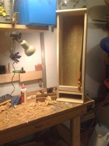 I prepared three boards approximately 1/2″ thick and then planned to cut a rabbit in the back of the carcass to support the boards.