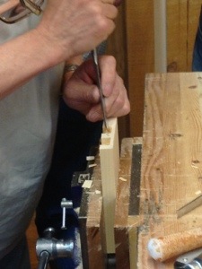 Looking through my photographs of the stages in this project I notice they are lacking. By this point in the week of class I was comfortable and confident in my work and the steady rhythm of chopping the mortises drove me forward.