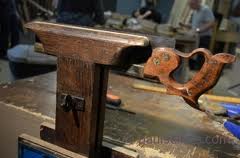 This has worked well and I encourage anyone to work this way, however I have decided that bringing the saw closer to my eyes and the light, should improve my sharpening accuracy. Currently I am considering two vise plans; The first a saw vise that was picked up by Paul Sellers and shown in his image below. The second is a vise I first saw on Peter Follansbee’s blog. The links should take you to the pages where I saw the vise images.