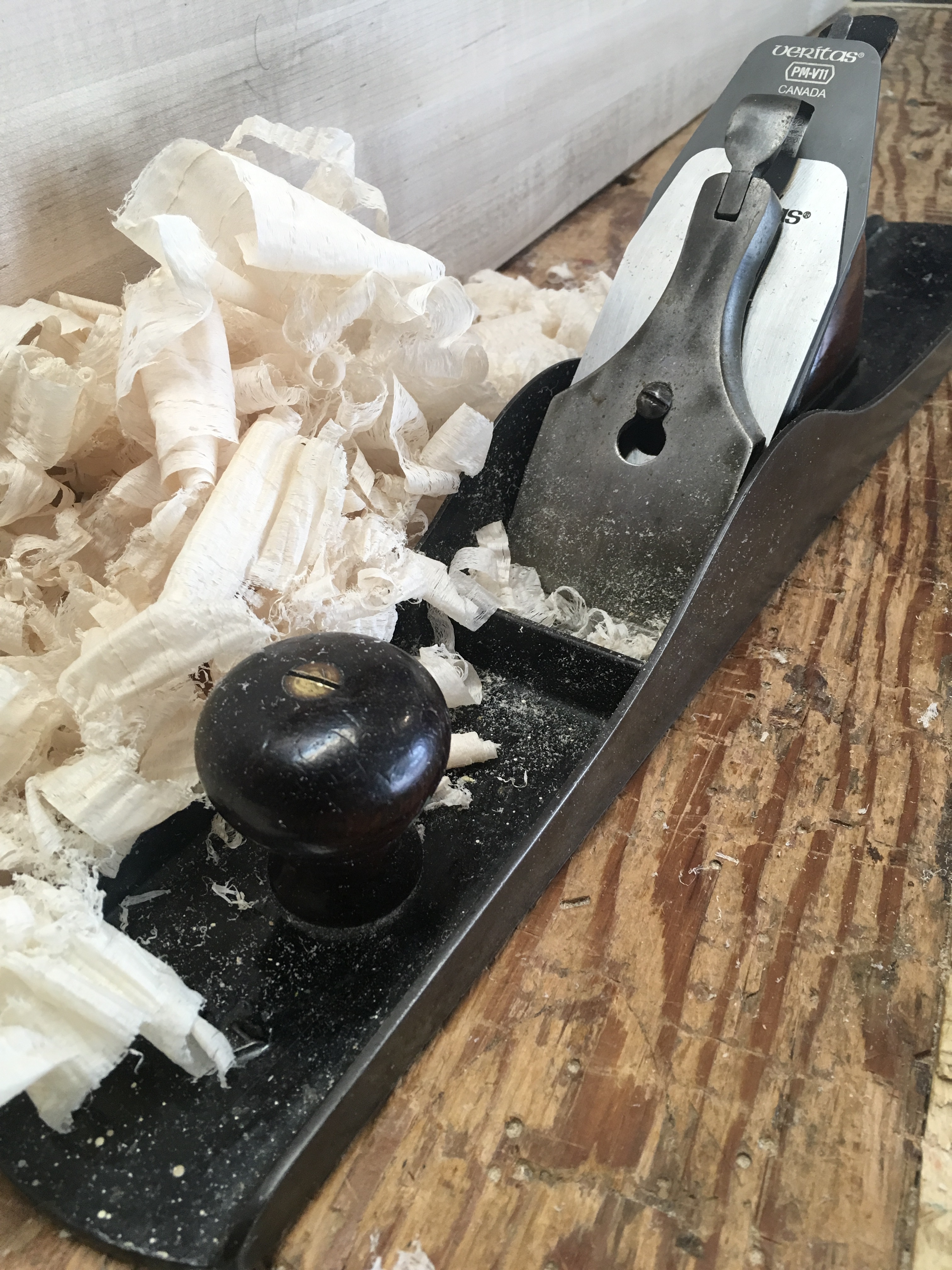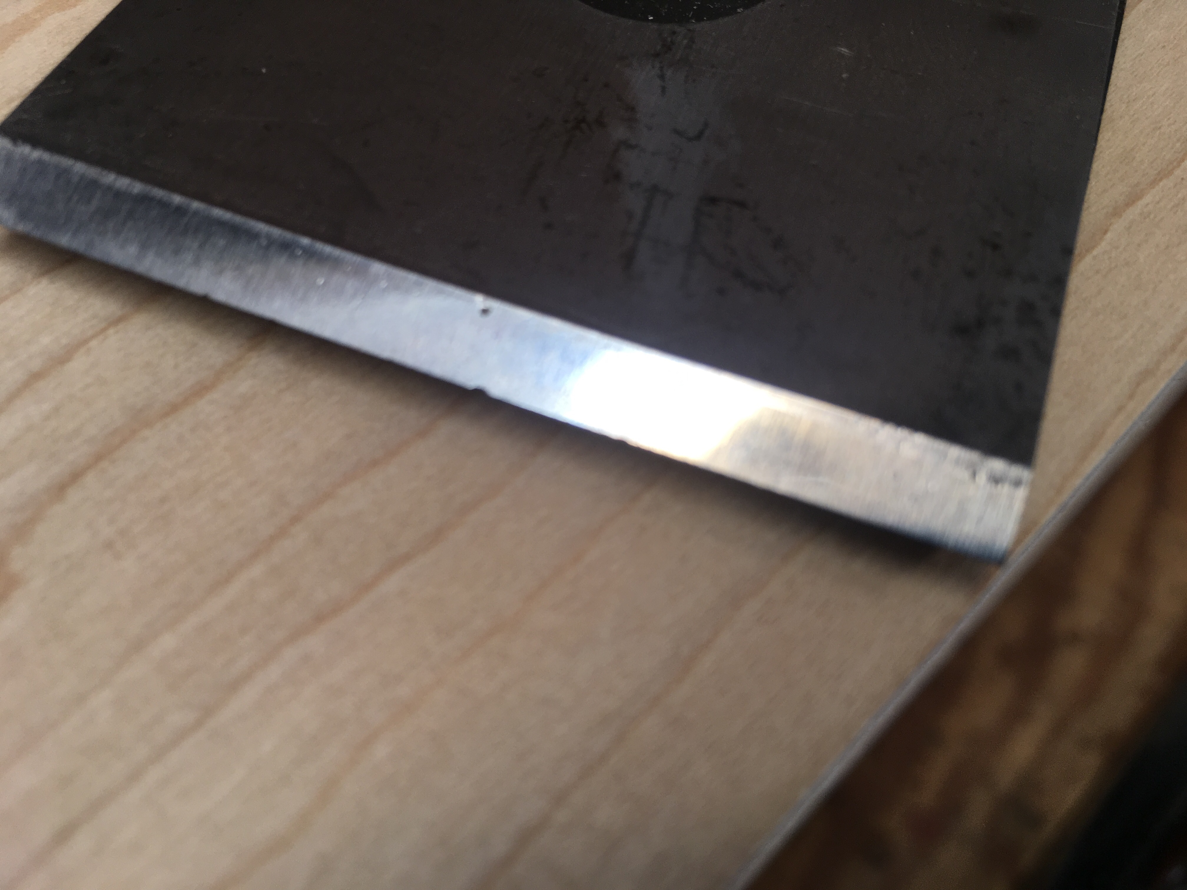 Using my Stanley #7 plane last weekend to clean up the face frame for the new workbench, it became apparent that the blade must be chipped. This is not the first time that this has happened with this blade and it’s becoming clear that it must be something in the metallurgy.
