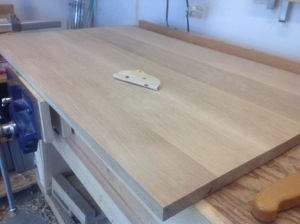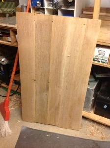 Glue the wrong board into the table top! In the photograph the second board is much darker than the rest (photo does not do it justice at all.) This is really not the type of mistake you should try at home, please leave it to the professional mistake makers….the board that was supposed to go here is still sitting on the bench ready to go………now where’s that saw!