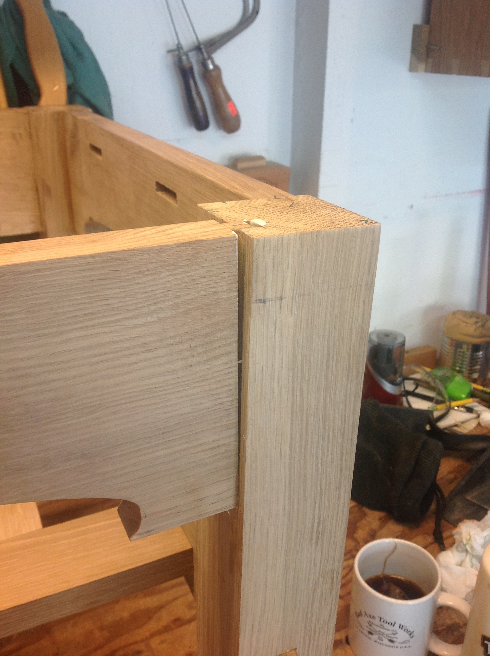 Through Tenons are a new joint for me. I have made a total of two and now I’m looking ahead to making 8 more. Using a saw to cut the tenons I stayed away from the marks and used a router plane to close in on the correct thickness.