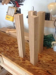 When I purchase the lumber for this project there was not and quarter sawn white oak that was 10/4 thickness. Not exactly true….there was not any quarter sawn white oak that I was willing to pay for in 10/4 thickness. It seemed very extravagant and a rip off to pay $12.75 per board foot for the material for the legs. Please comment if this is typical of pricing for you. Obviously I laminated the legs and cut them to size chopped the mortises and have arrived at this spot where I realize that my plan includes shaping the legs.