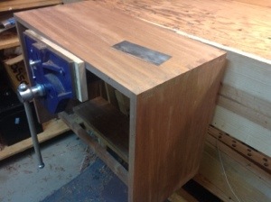 Placing the entire carcass in my vice makes the entire process much easier. When I bought the vise earlier this year I debated on the size I needed . It seemed a little extravagant to purchase one with a 15″ opening at the time but I have not regretted it. As I work the piece with planes and scrapers it is rock solid, at a great height and easy to reposition. My only regret is that I wish I had mounted it a 1/2 inch further out from the bench to allow more room to get my fingers behind a board.