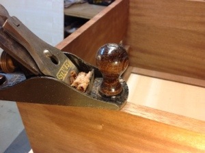 After sharpening my plane, time is spent smoothing the carcass and ensuring the lid fits leaving no gaps. I enjoy the sound of the plane as it slices through the grain and it only takes a few minutes to smooth everything. A sharp blade is a must when doing this work.