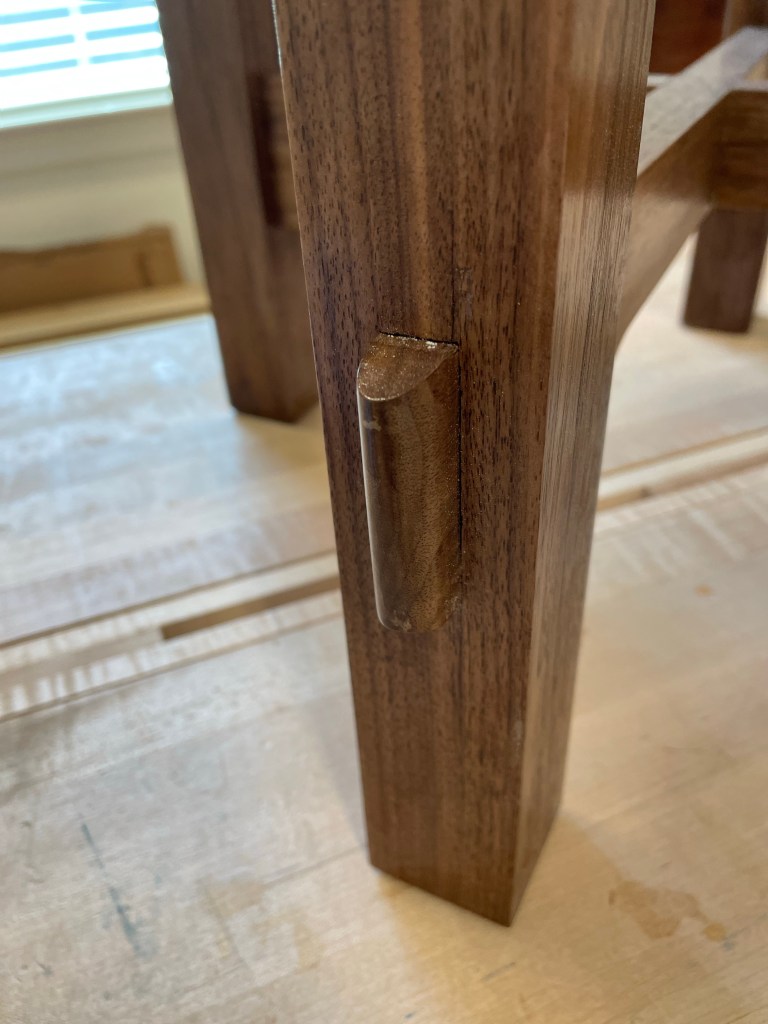 The mortiser is now accurate and producing straight mortise walls. That means its time to get out the chisel and mallet. I know of no mor e accurate way to cut a mortise than to do it by hand. The plans for this coffee table are to have through mortises for the shelf and side boards. I love the look of the through tenon and would not miss the chance to add them to a piece of furniture. Here’s an example from a previous project.