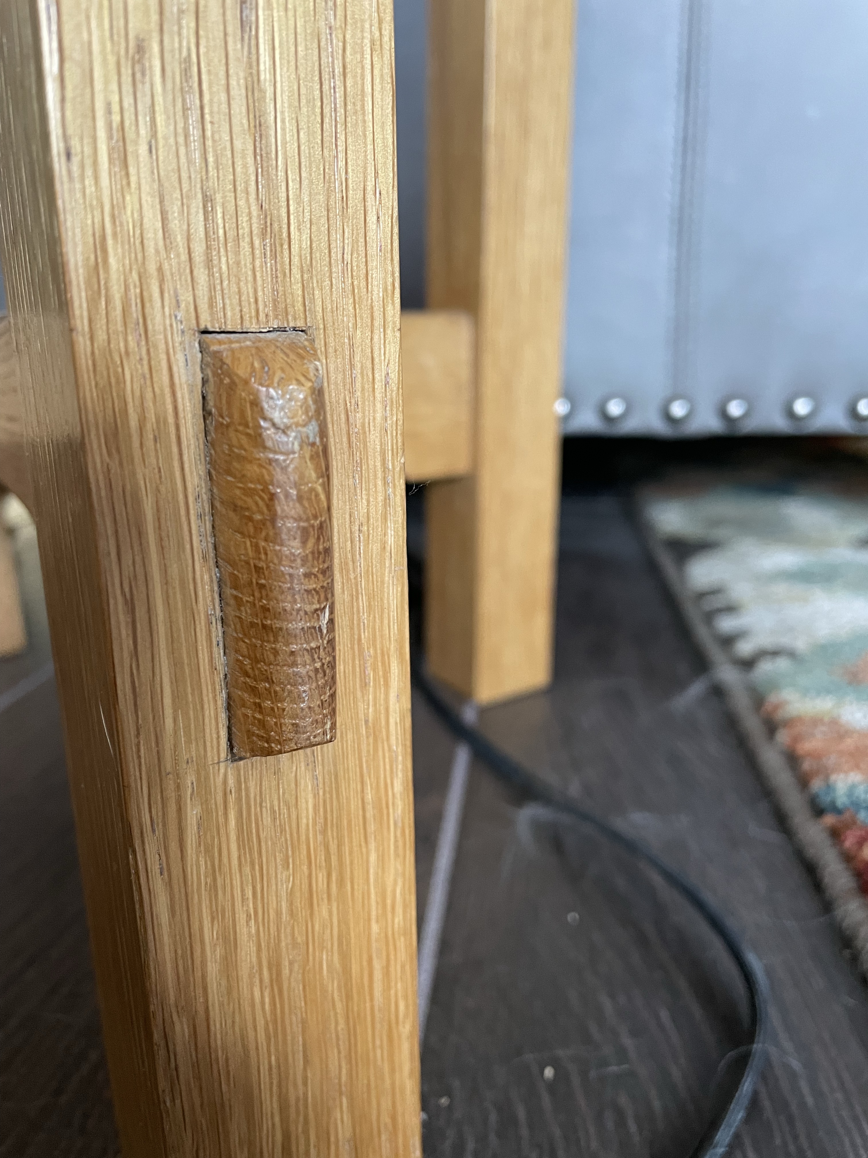 As several of you pointed out the last post concerning the crack in the side table top was unclear and incomplete. I must have accidentally sent it out over the weekend before I finished writing. Here’s the full story….