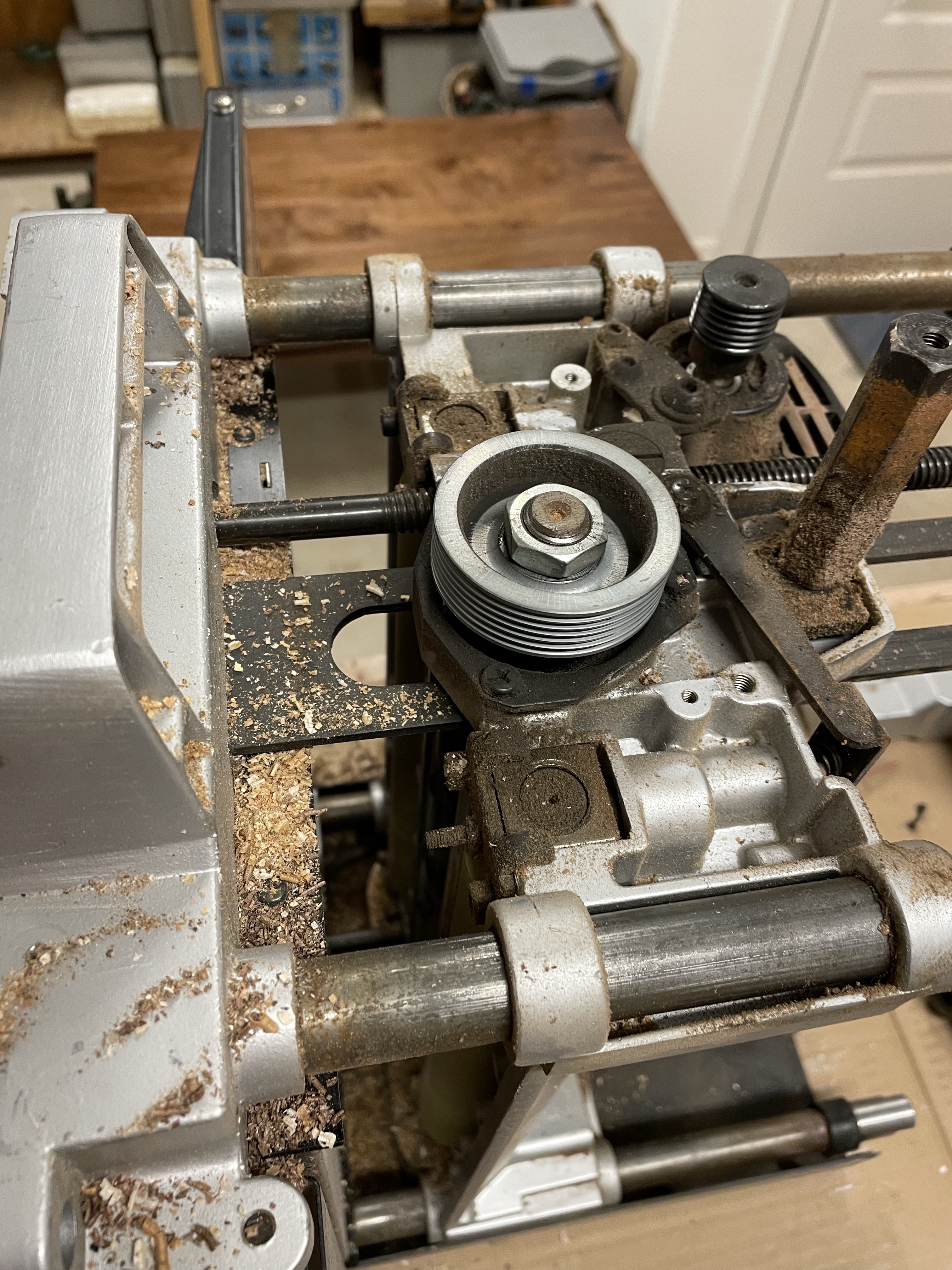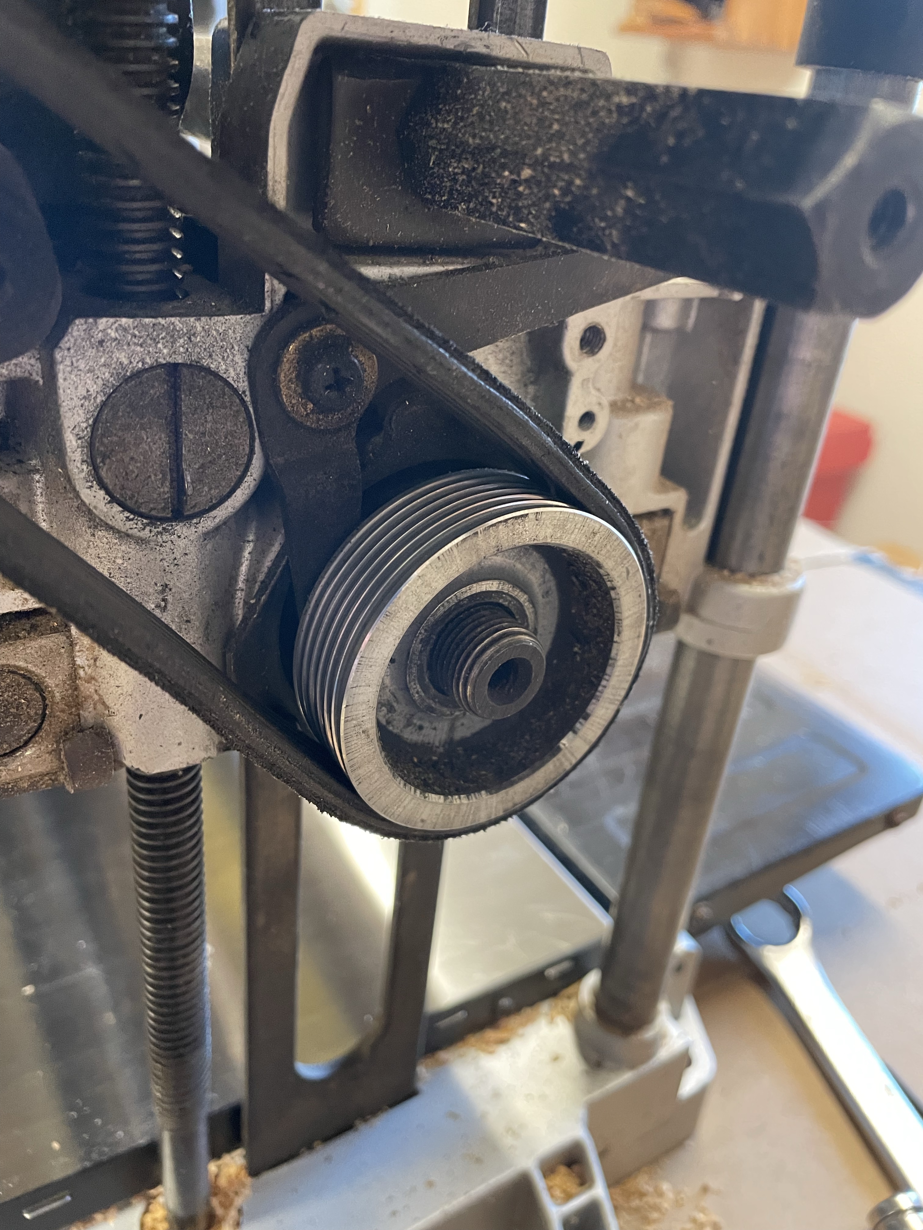 Once complete I took it for a test run immediately smelling burning plastic and managed to locate a couple of pieces of plastic. And a hole in the pulley guard.