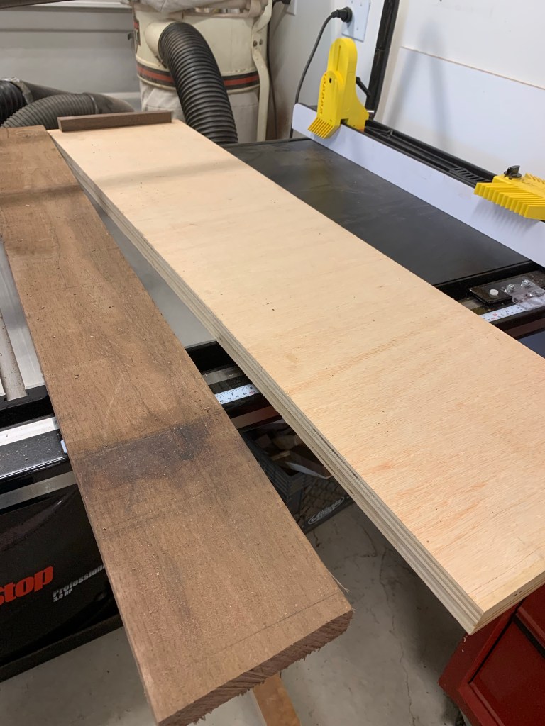 This month however I tried something totally different that I know several of you have done for wider boards. I built a Planer sled out of 3/4 plywood and a piece of scrap that was about 48” long and 11” wide. The lower board is made out of two pieces of plywood glued together to make it as rigid as possible. The smaller I assembled to handle shorter pieces.