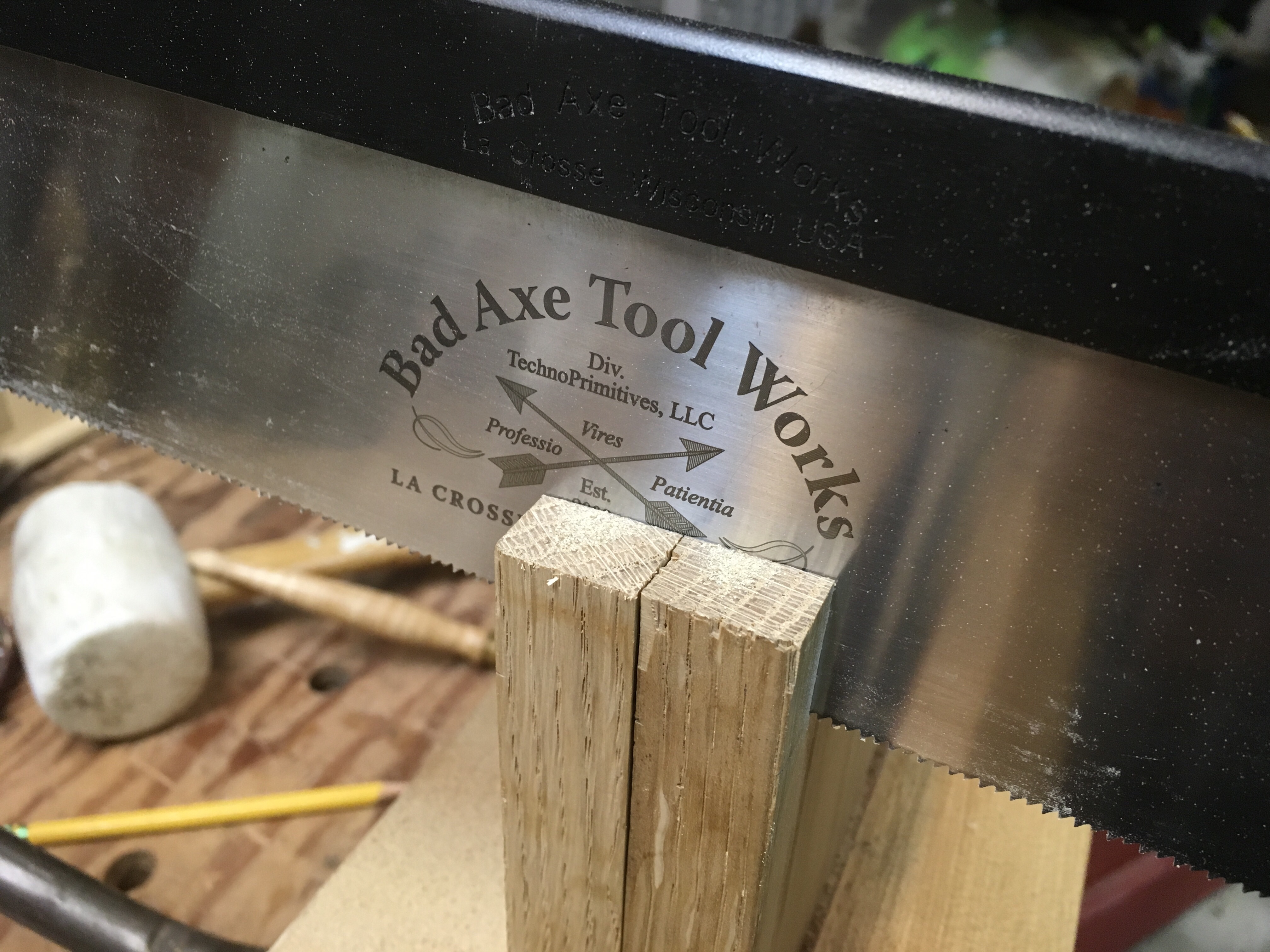 I was also greatly helped by a freshly sharpened Bad Axe Saw. When I was at the saw sharpening seminar, Mark Harrell took the saw and gave it a little personal service. It’s cutting great. Although I sharpen most of my own saws there is nothing like have a pro do it for you.